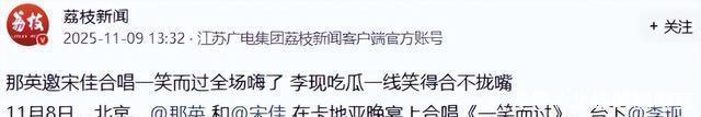 参考链接 荔枝新闻(那英邀宋佳合唱一笑而过全场嗨了,李现吃瓜一线笑得合不拢嘴2025.11.9)