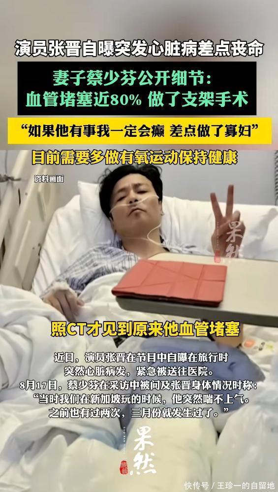 今年4月,张晋和家人在新加坡旅游时,突发心脏病,他当时脸色铁青,动弹不得,喘不上气,说不出话,差点死掉了。